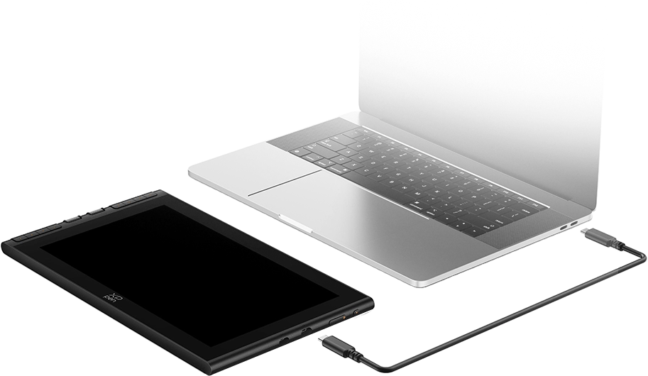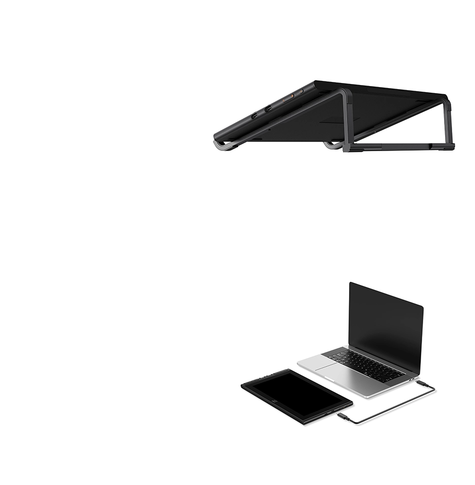 Mit einem voll ausgestatteten USB-C-Kabel verbindet sich das Grafikdisplay über ein einziges Kabel mit Ihrem Gerät* und bietet sowohl Strom als auch stabilen Datentransfer - keine unordentlichen Kabel, perfekt für kreatives Arbeiten unterwegs.