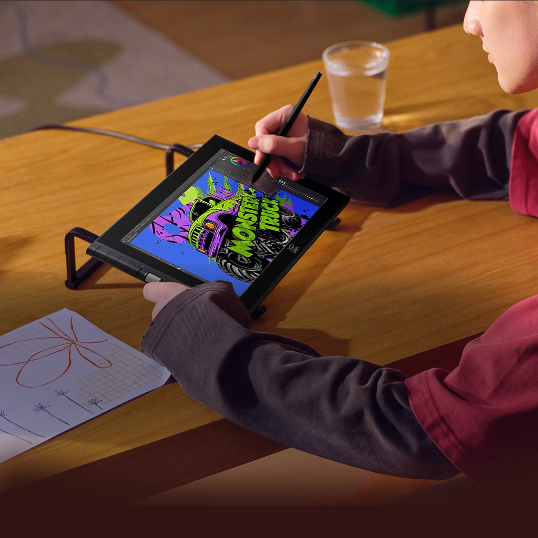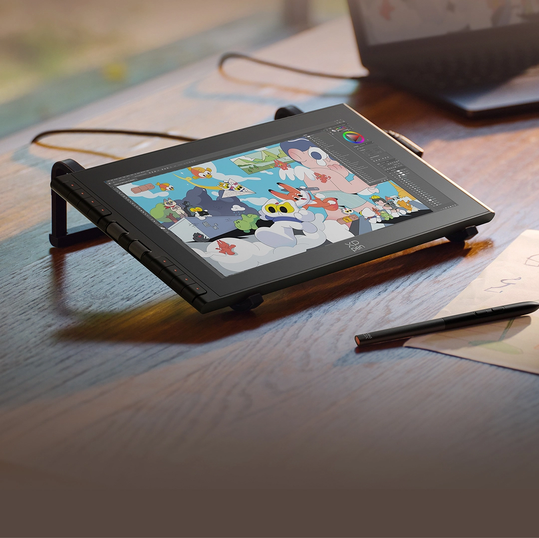 Platzieren Sie das Artist 12 3rd auf dem klappbaren Ständer, der einen geeigneten Unterstützungswinkel bietet. Der Ständer ermöglicht es Ihnen, bequem zu erstellen und ist kompakt genug, um in eine Tasche zu passen und leicht zu tragen.
