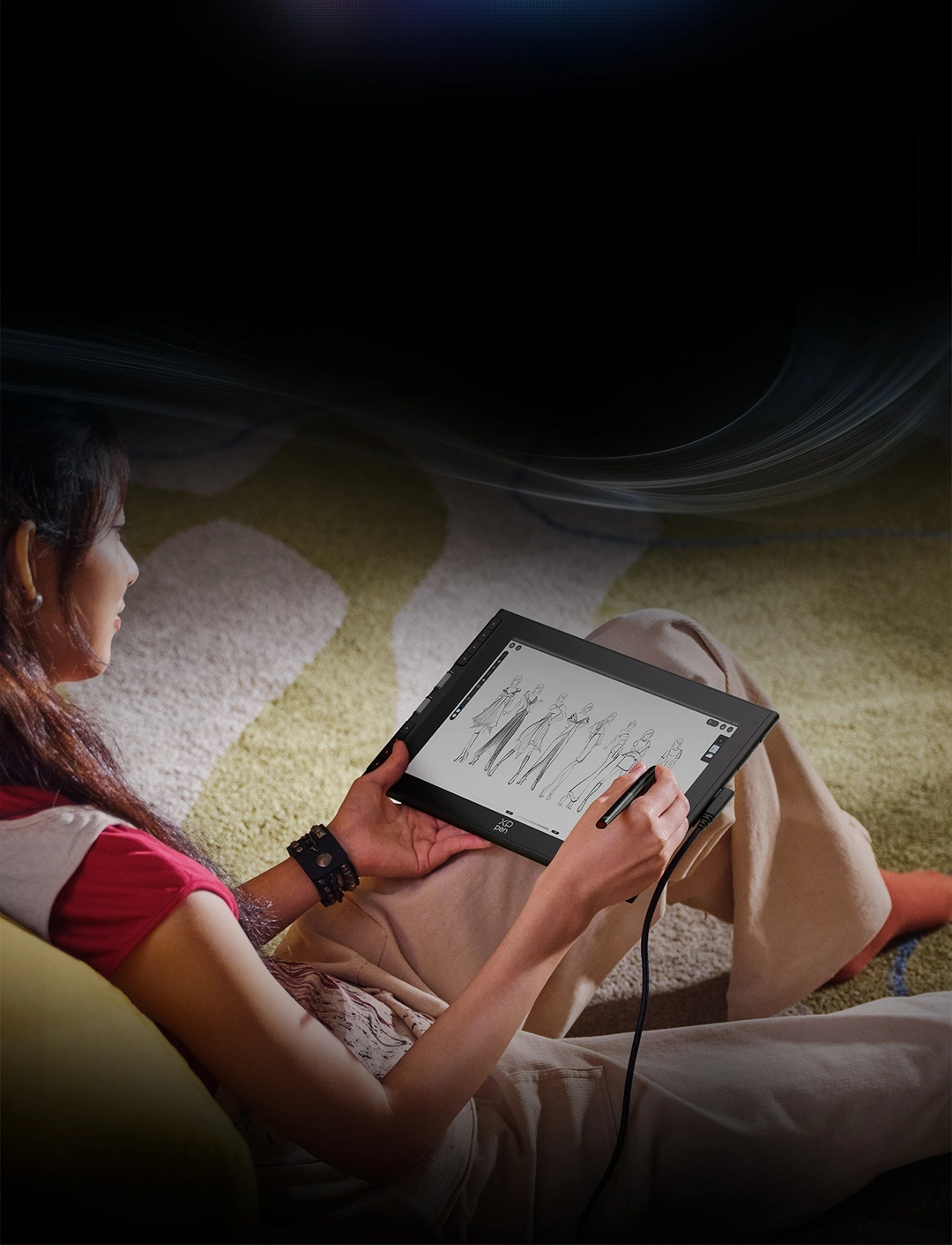 Der Stift mit 16K Druckstufen bietet feine, sensible und sanfte Striche und ermöglicht ein Zeichenerlebnis wie auf Papier.