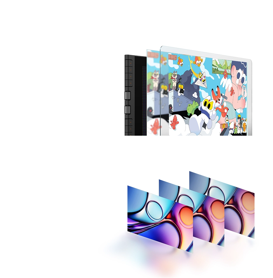 Das voll laminierte Display ist aus AG nano-geätztem Glas und AF-Beschichtung gefertigt. Es widersteht Blendung, Kratzern, Fingerabdrücken und Flecken und reduziert gleichzeitig die Augenbelastung. Sie werden eine echte Stift-zu-Papier-Präzision ohne Ablenkungen genießen.