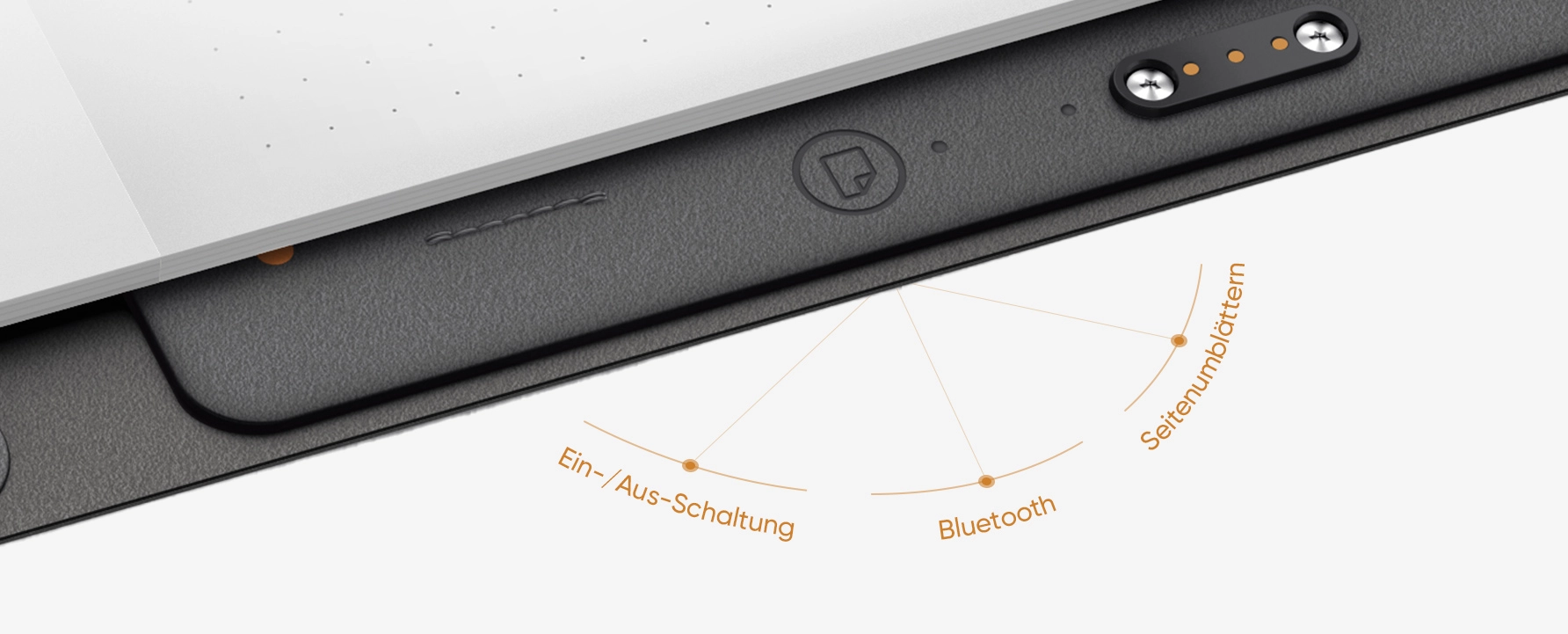 Mit einem einzigen Knopf können Sie die Stromversorgung, Bluetooth und das Umblättern der Seiten einfach und effizient steuern.