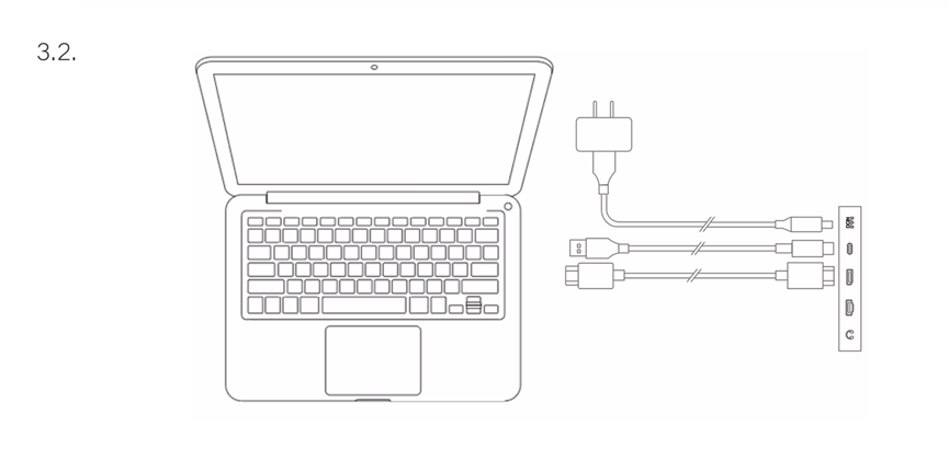 HDMI: Verwenden Sie das HDMI-Kabel und das USB-C-auf-USB-A-Kabel, um Ihren Computer und Ihr Gerät zu verbinden.